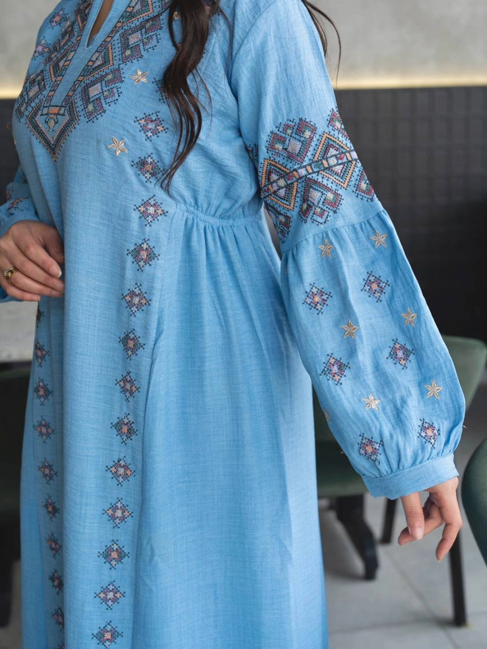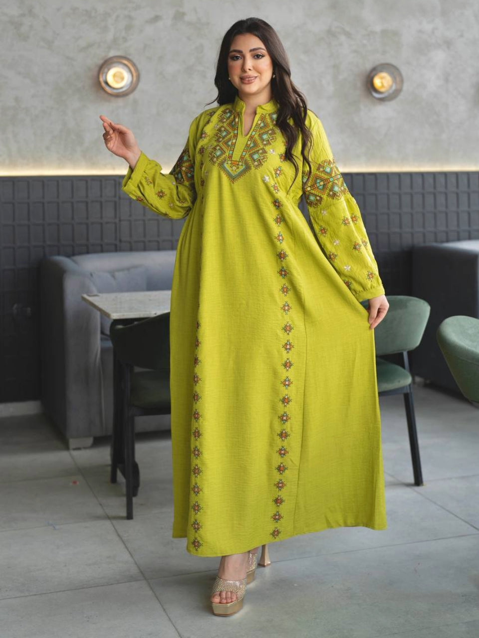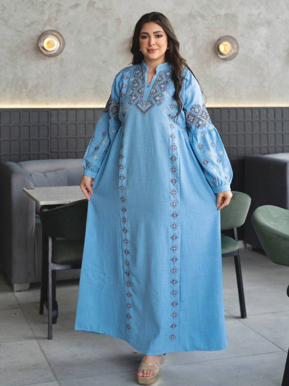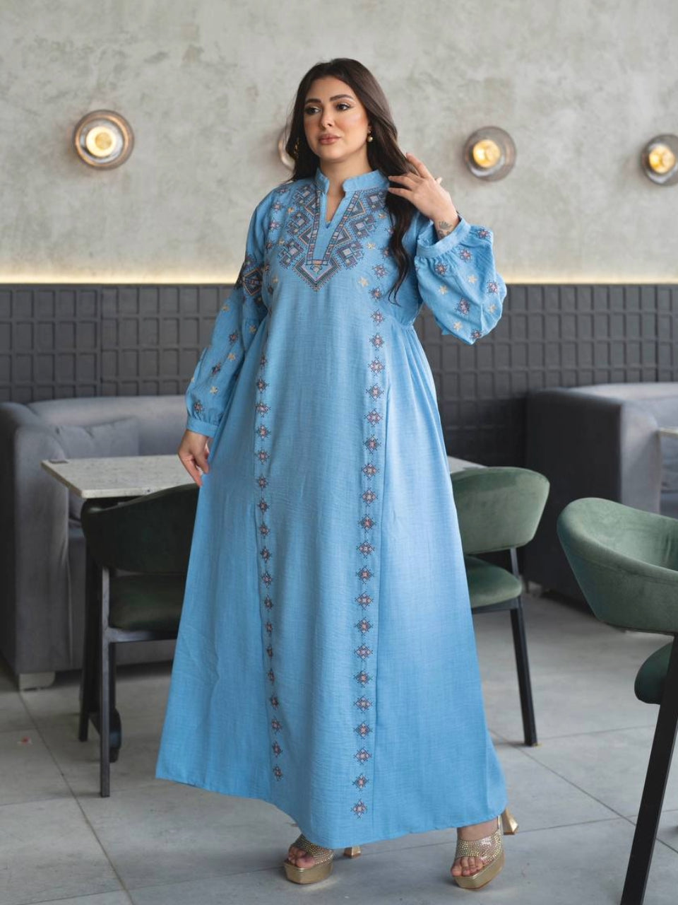 This Abaya Dress is expertly crafted with intricate embroidery along the hemline. Made with high-quality linen, this dress not only offers elegant design but also provides superior comfort. Perfect for any occasion, it is an essential addition to any wardrobe.