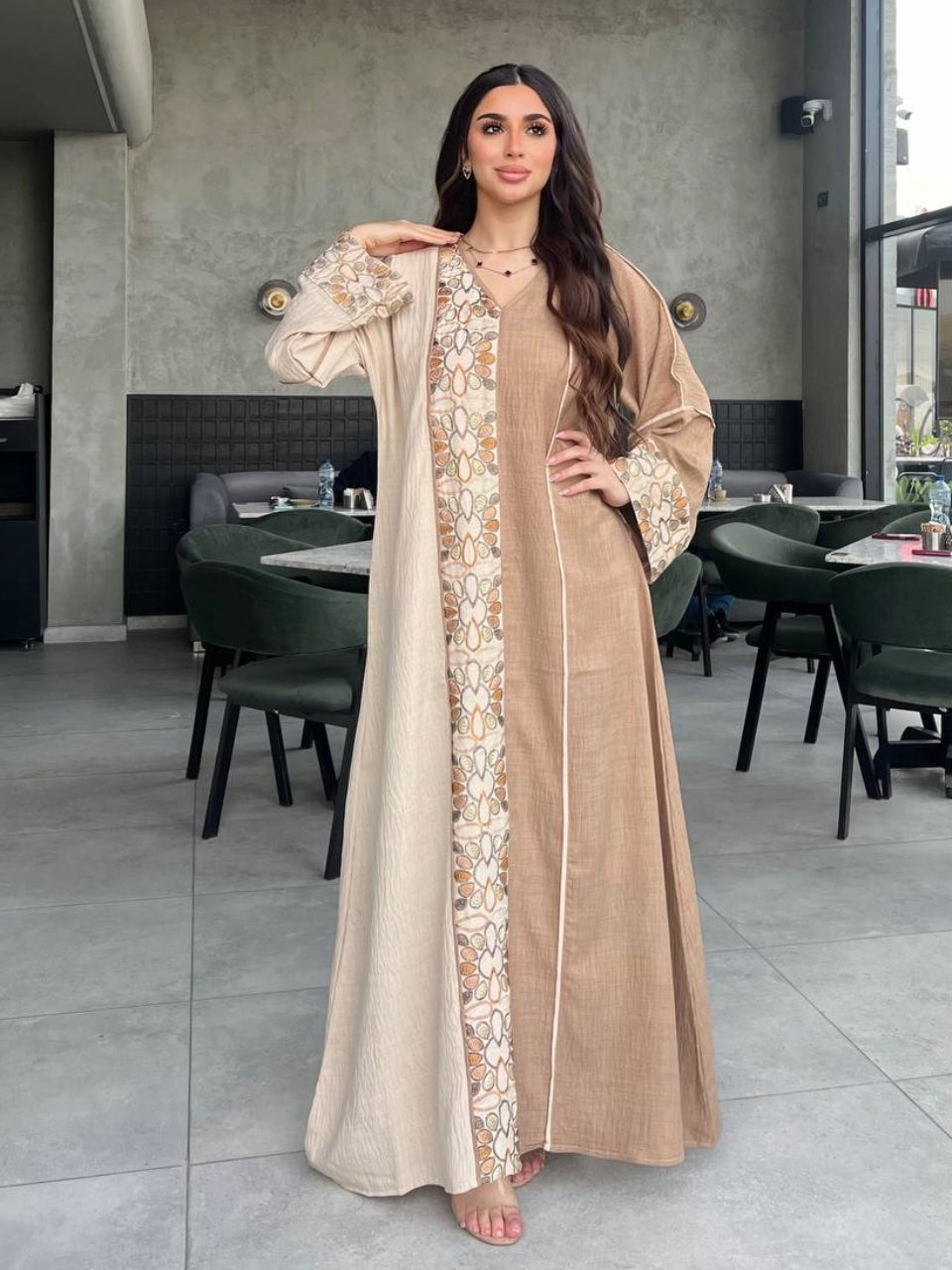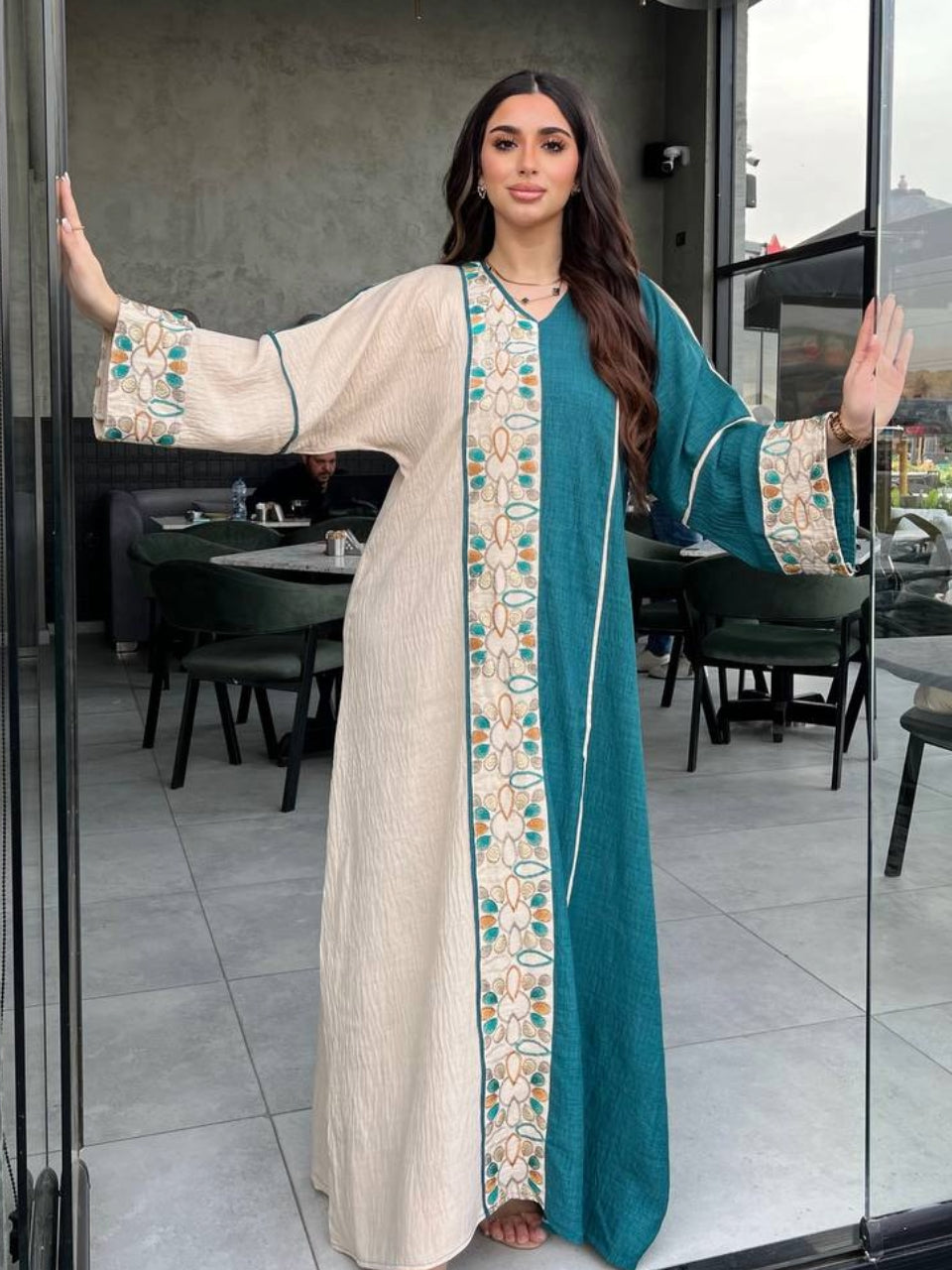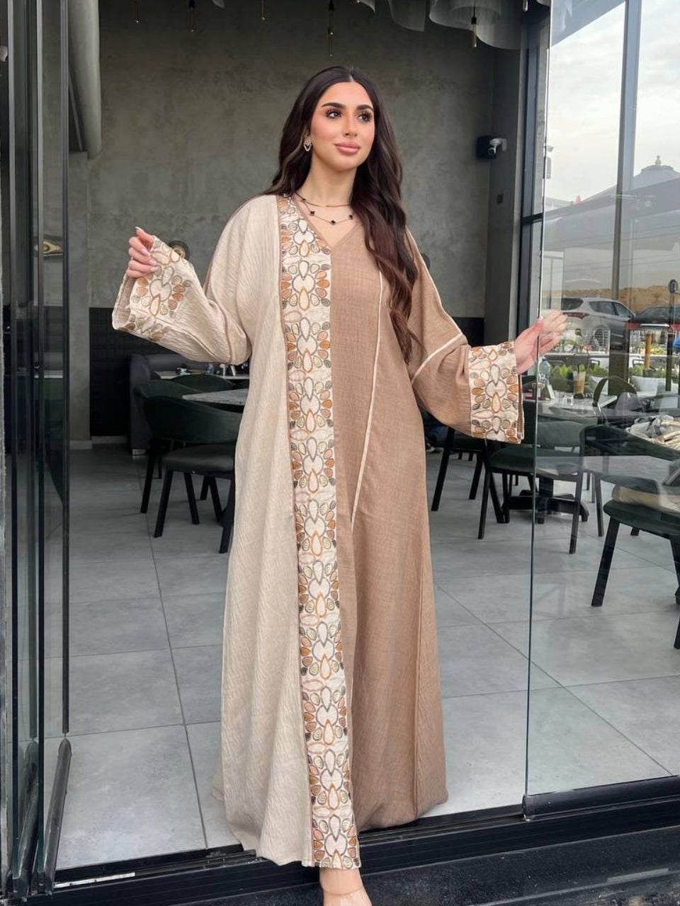 This Abaya Dress Linen Due features a striking design with two complementary colors and intricate embroidery. Made from high-quality linen, this dress is not only elegant but also durable, making it a perfect addition to any wardrobe. Experience the beauty and quality of traditional abaya dress with a modern twist.