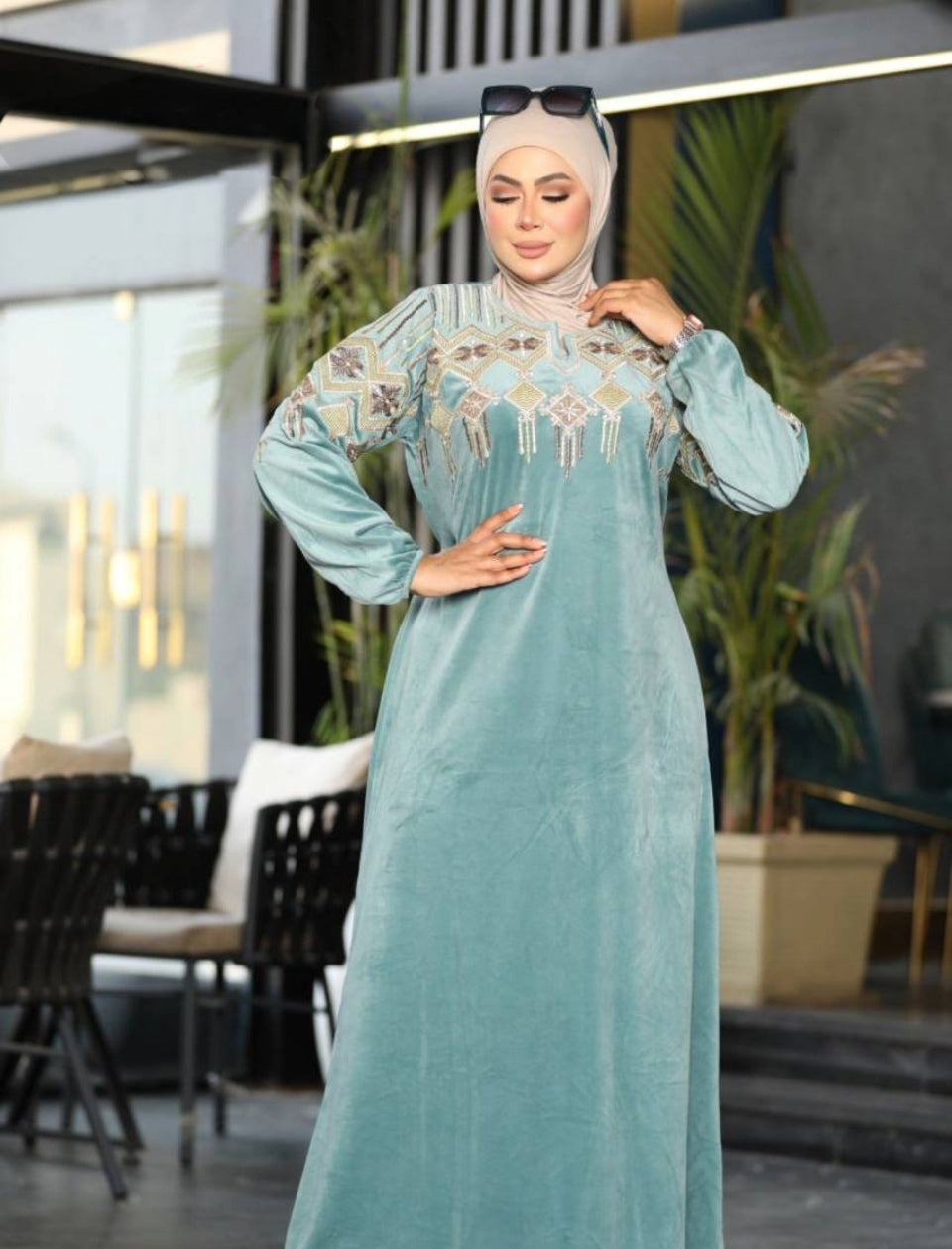 Beautifully crafted dress made of luxurious velvet fabric, embellished with intricate embroidery. Its eastern style adds a touch of elegance and sophistication to any outfit. Perfect for special occasions or for elevating your daily attire.