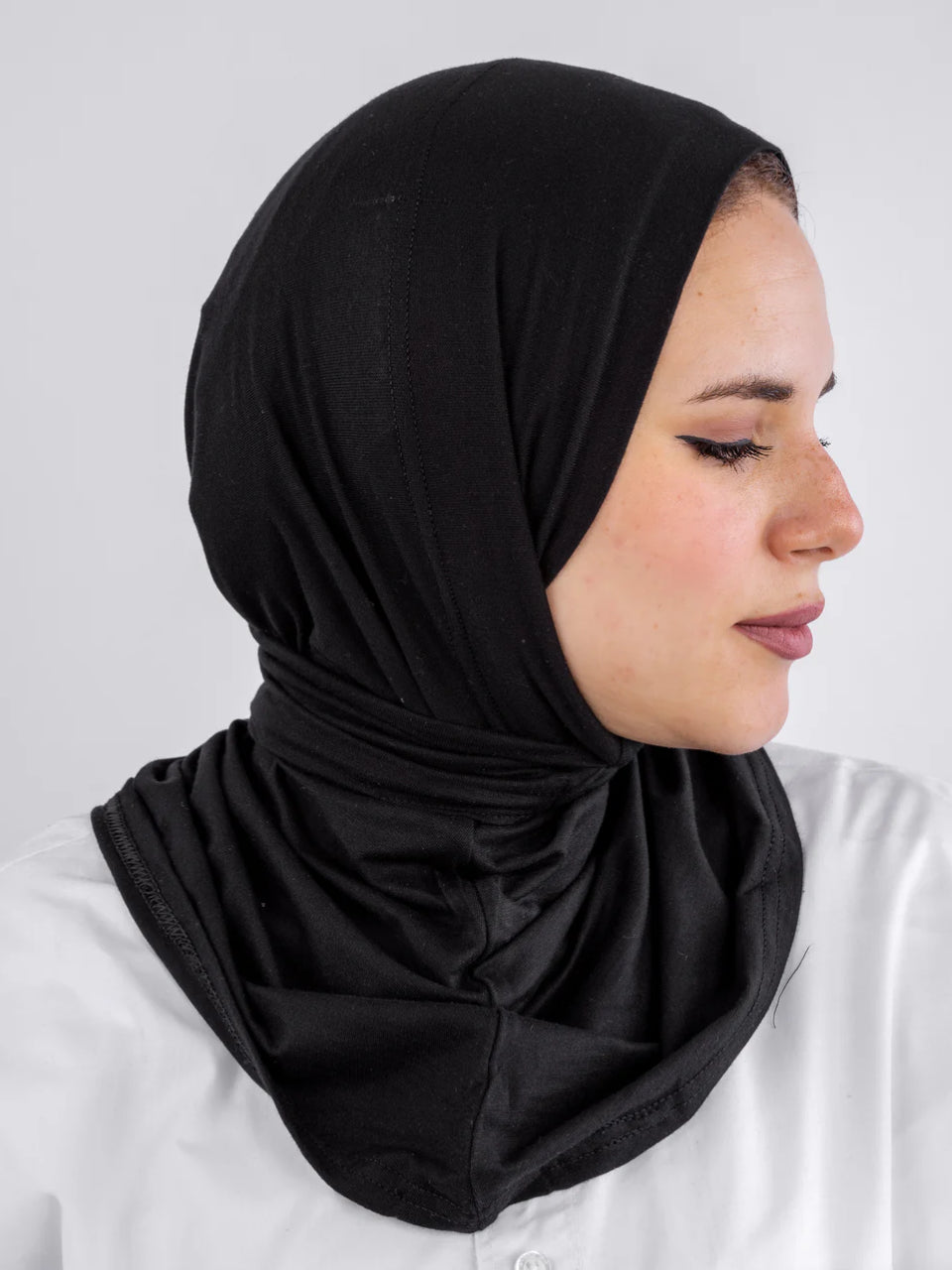 Effortlessly create a stylish and modest look with our BASIC CLIPS INSTANT HIJAB. Made from comfortable jersey fabric, this hijab provides instant and easy coverage. No need for pins or styling - simply clip and go. Experience convenience and comfort with our instant hijab solution