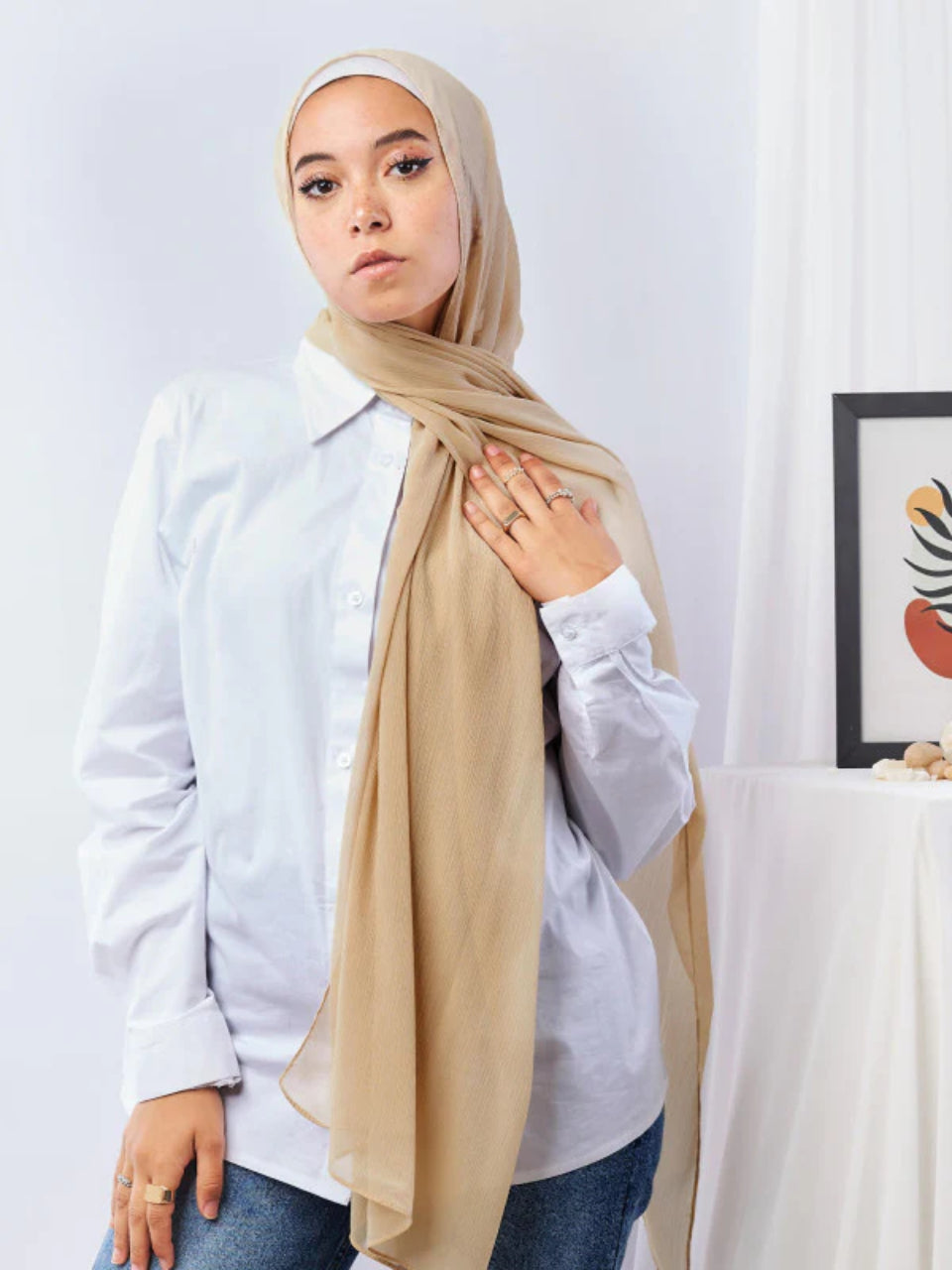 This Crinkle Chiffon Basic is made of high-quality chiffon material and comes in a variety of classic colors. Its lightweight and versatile design allows for effortless styling.