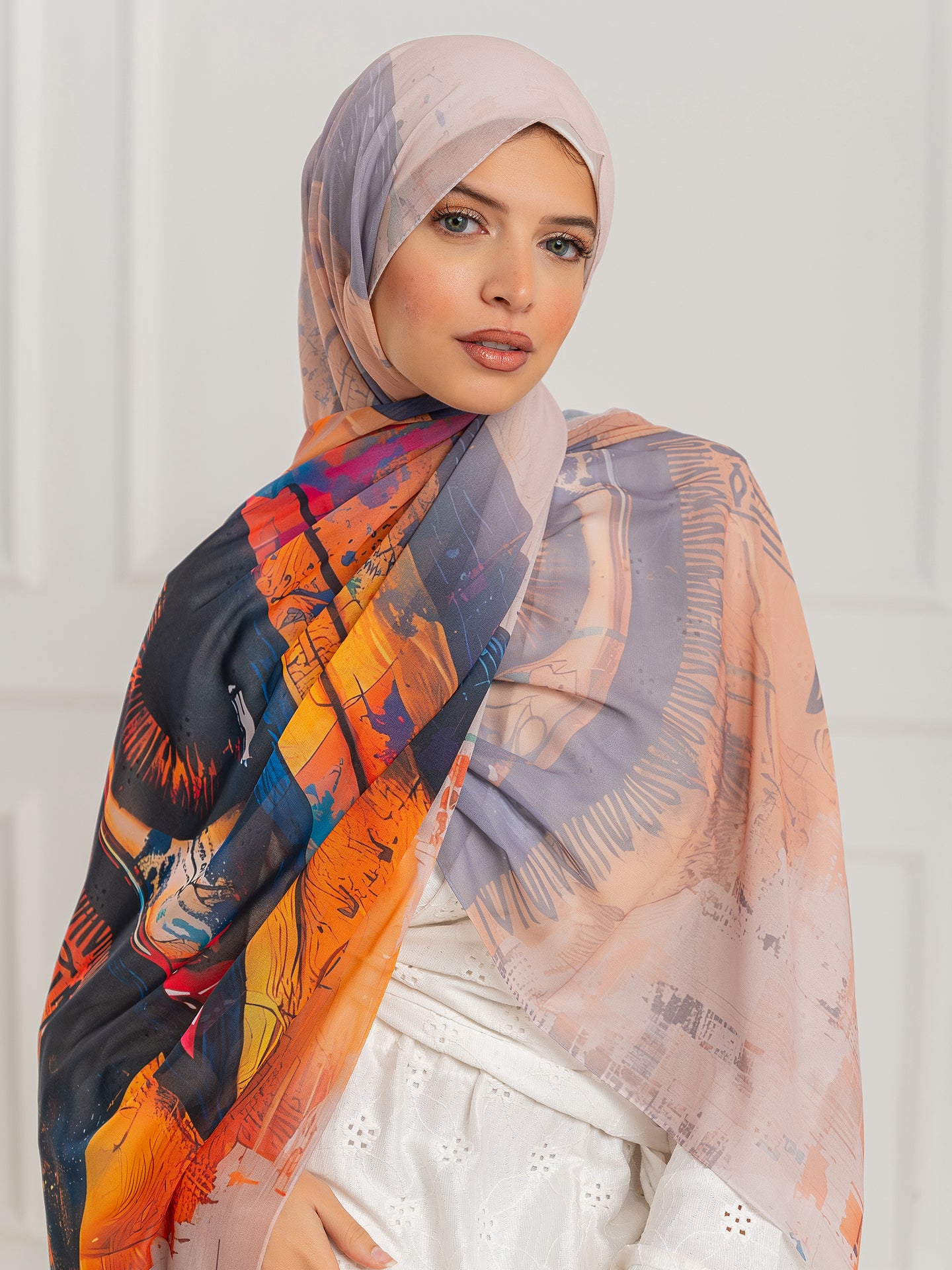 Exclusive collection of chiffon scarves featuring artistic designs. Made from high-quality chiffon material, these scarves elevate any outfit with a touch of sophistication. Add a unique and stylish flair to your wardrobe with Chiffon Artistic.