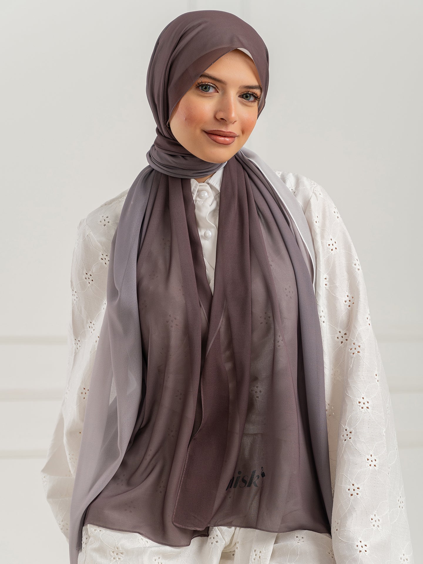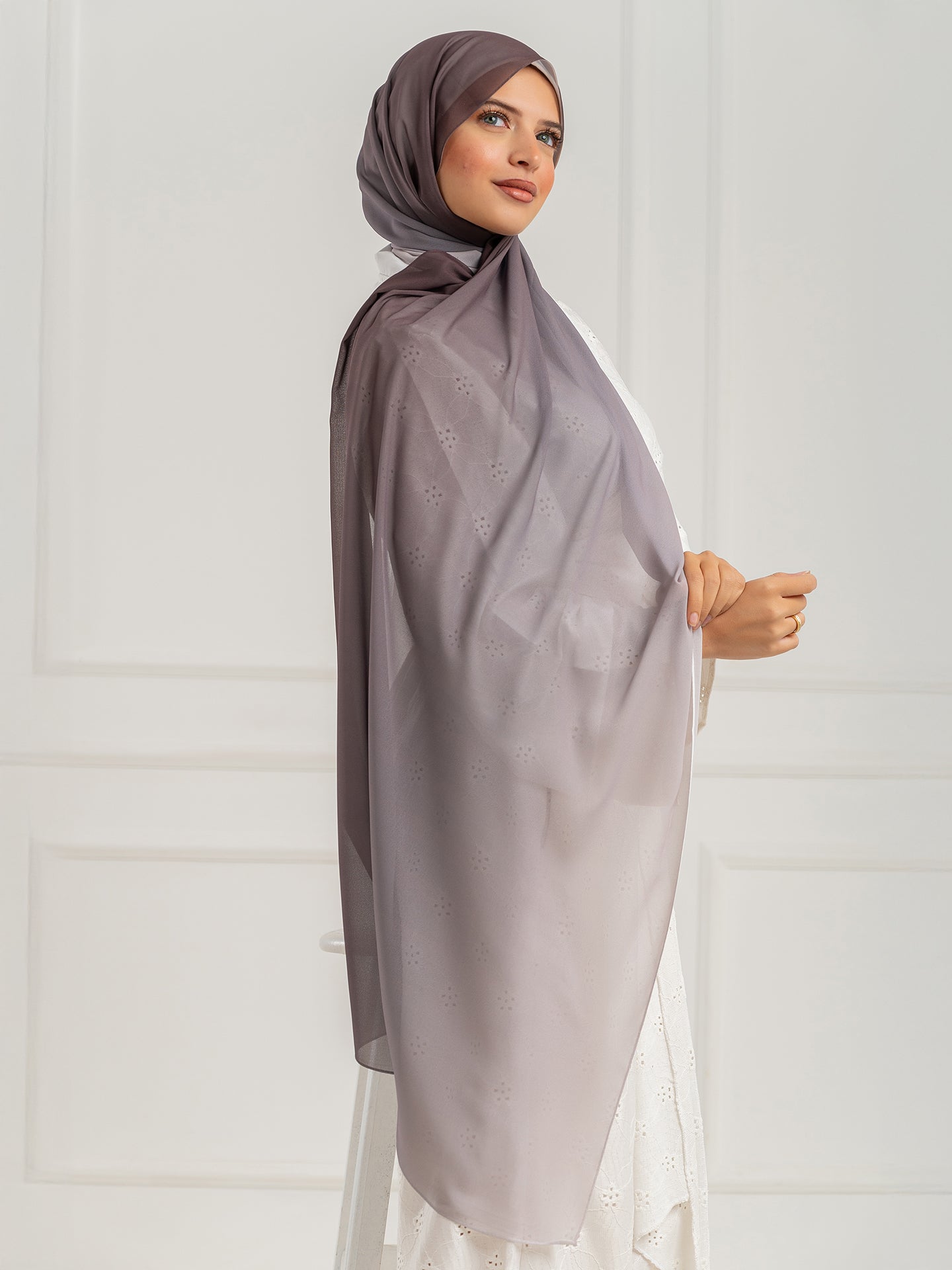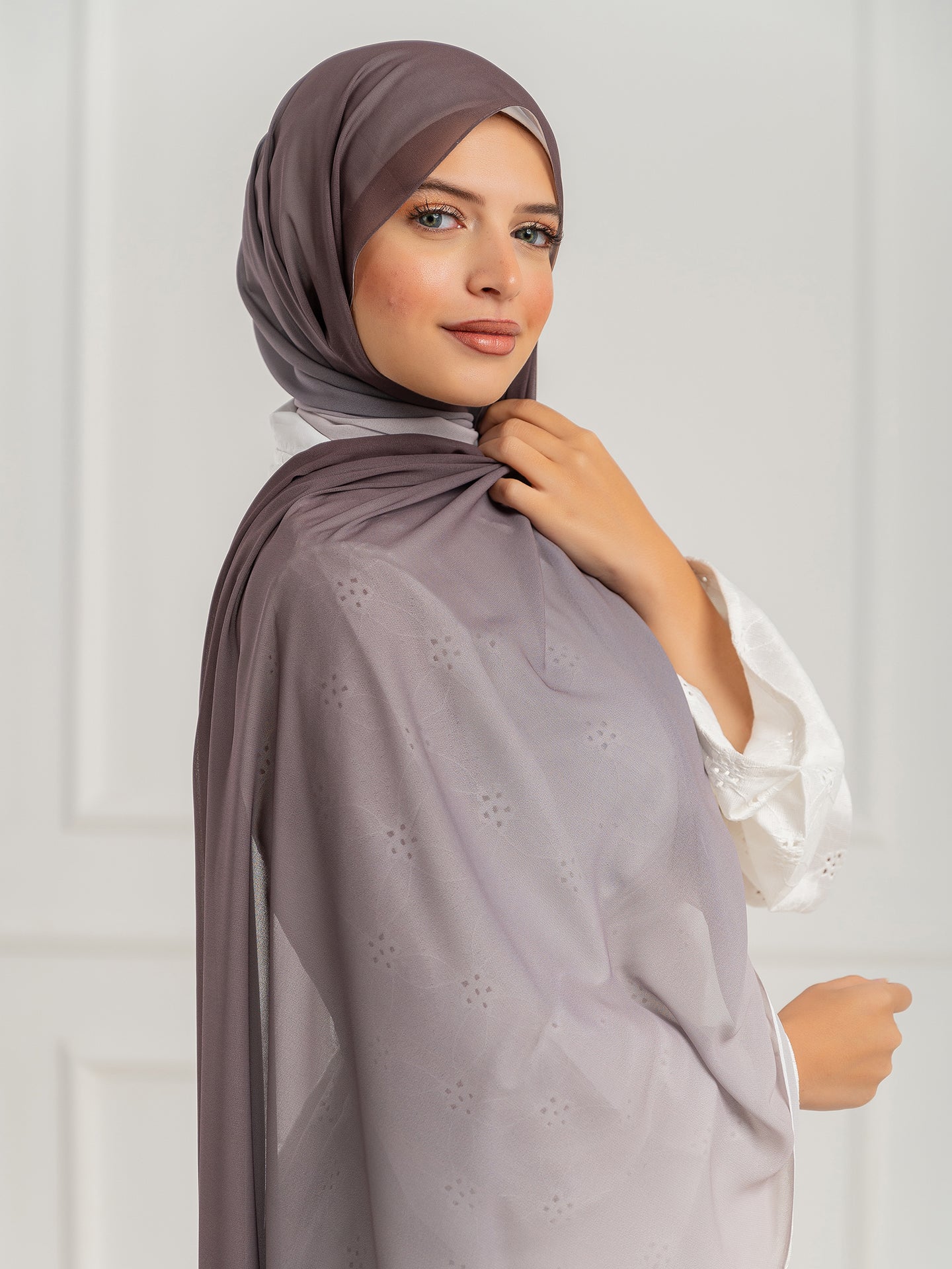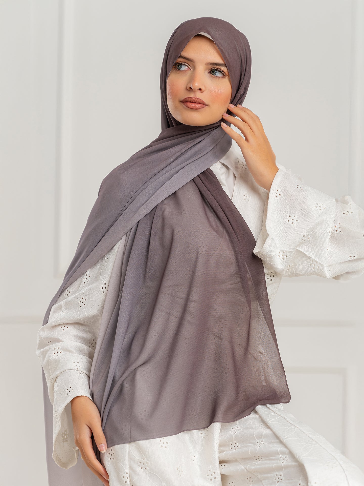 Enhance your outfit with our Chiffon Degrade scarf, featuring a beautiful brown degrade design. Made from high quality chiffon, this scarf is both fashionable and lightweight, perfect for any occasion.