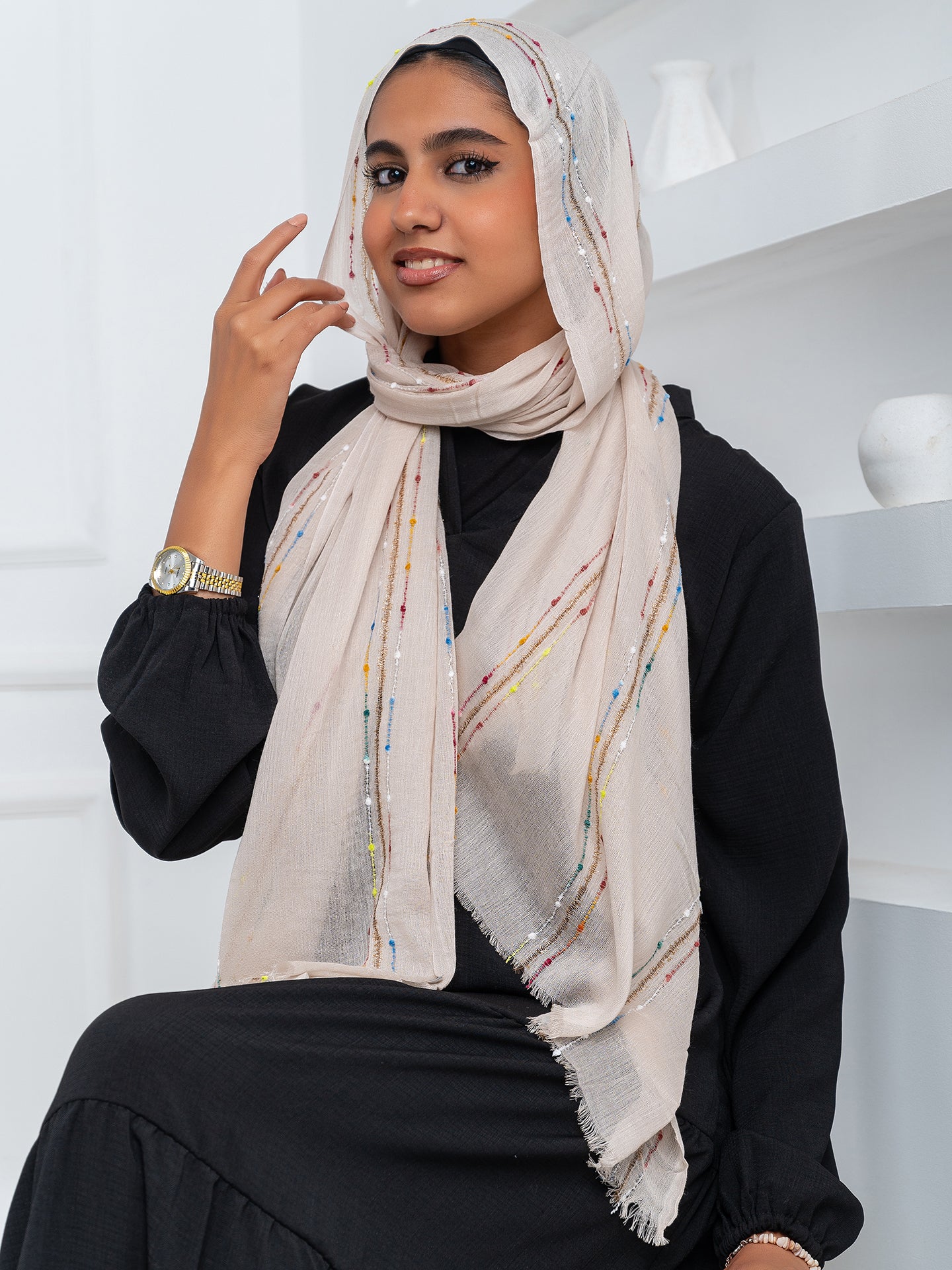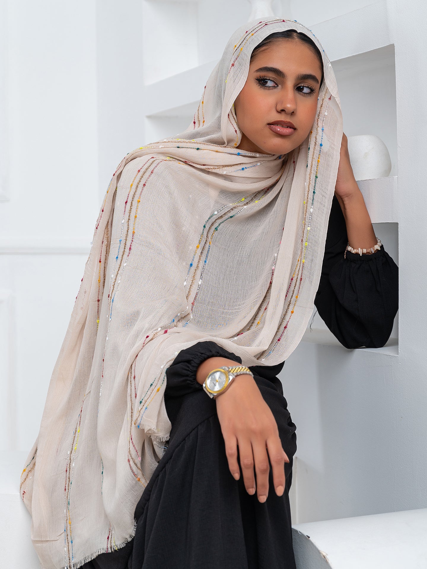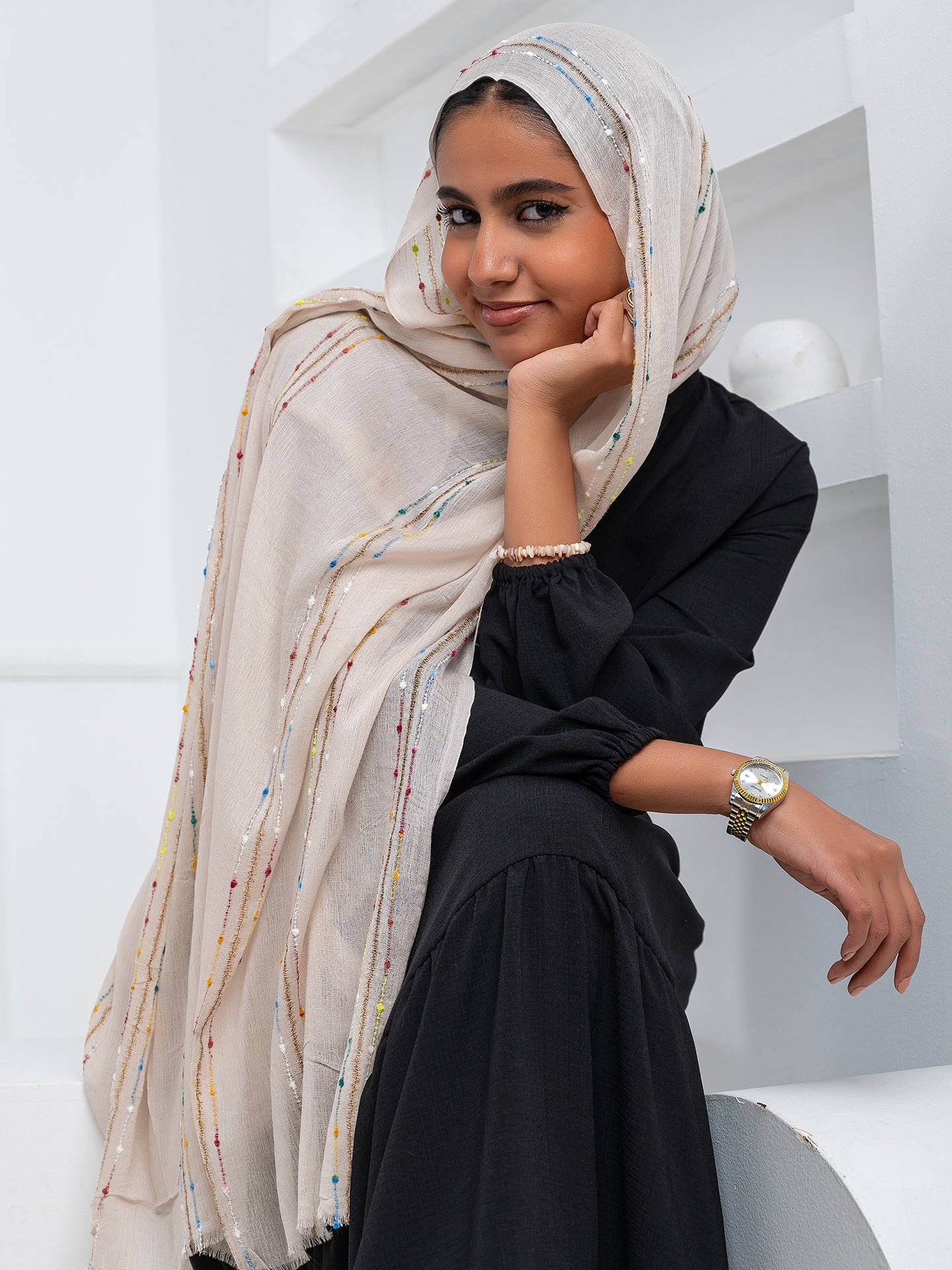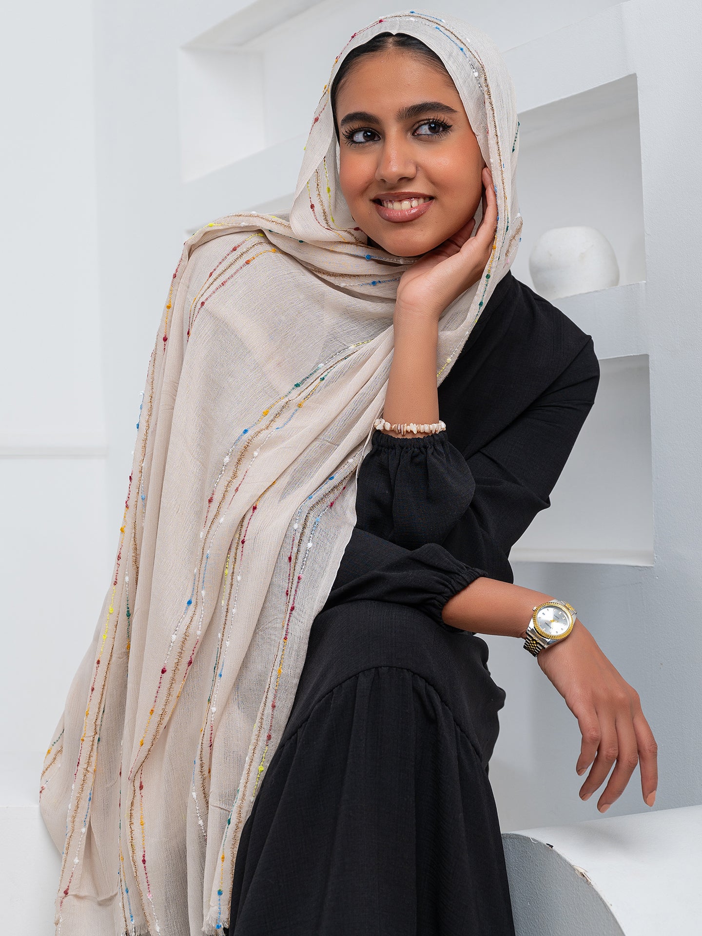 Made with soft, luxurious modal fabric, this hijab features beautiful embroidery that adds a touch of elegance to any outfit. Experience the perfect balance of comfort and style.