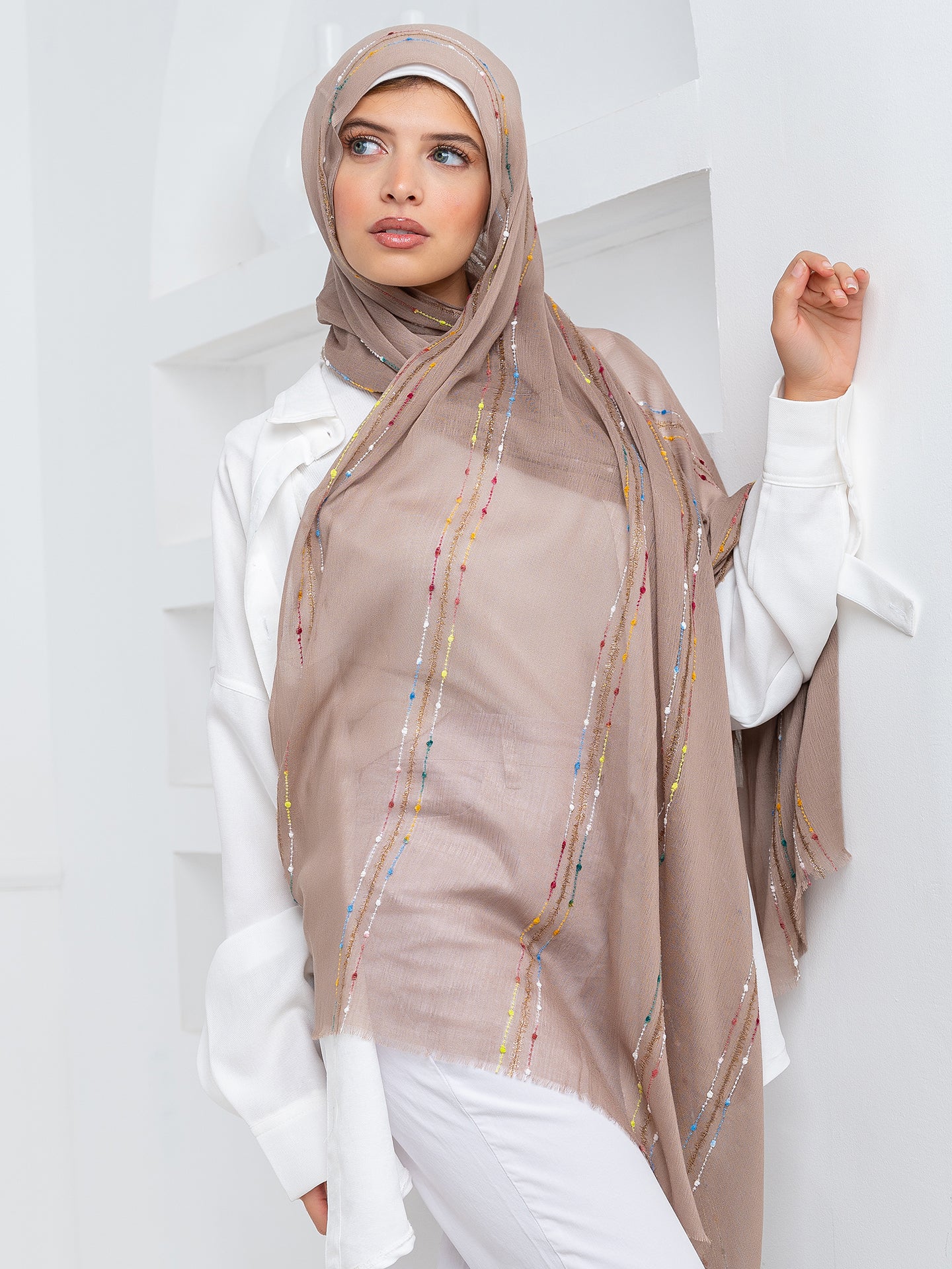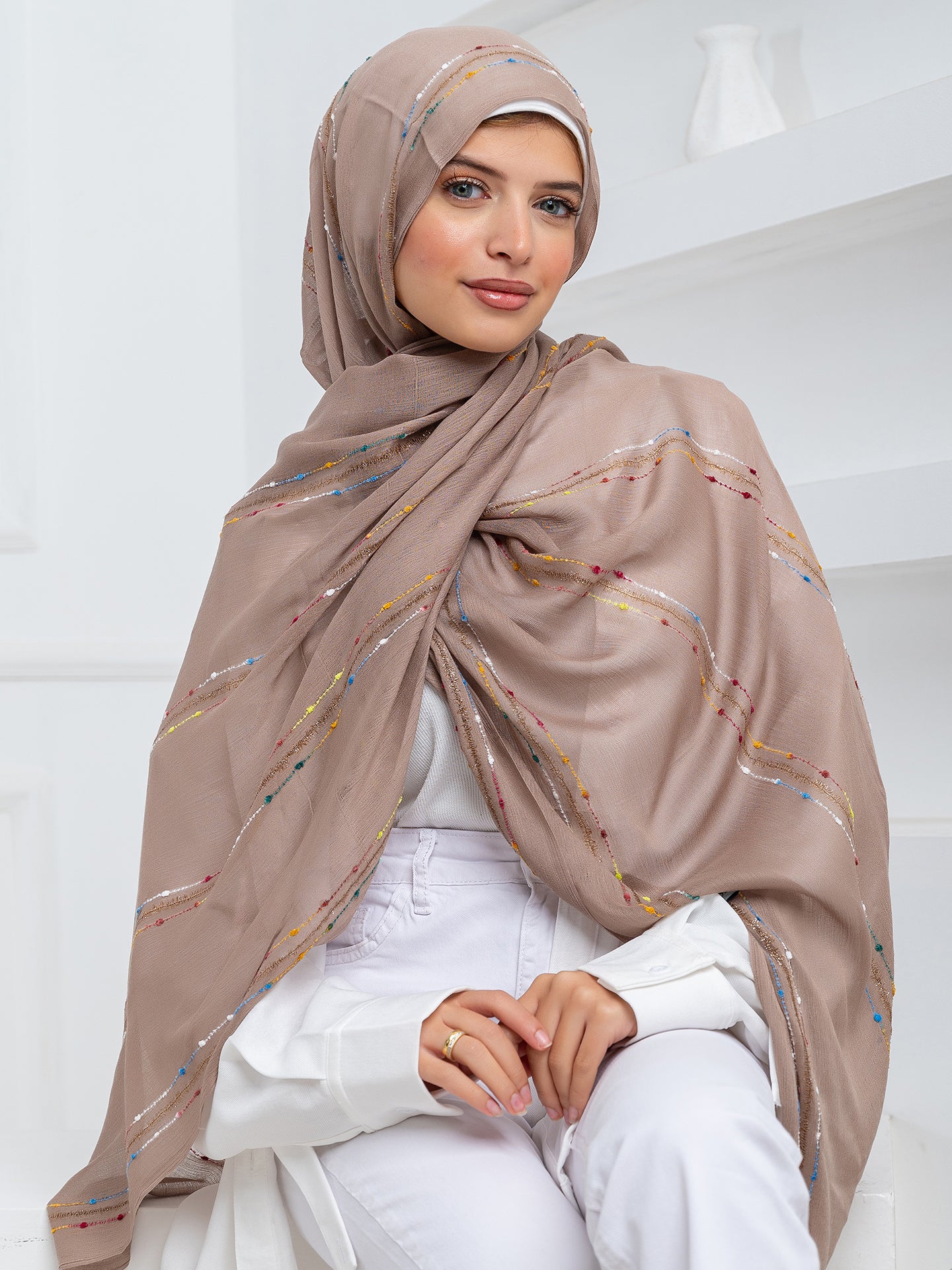 Made with soft, luxurious modal fabric, this hijab features beautiful embroidery that adds a touch of elegance to any outfit. Experience the perfect balance of comfort and style.