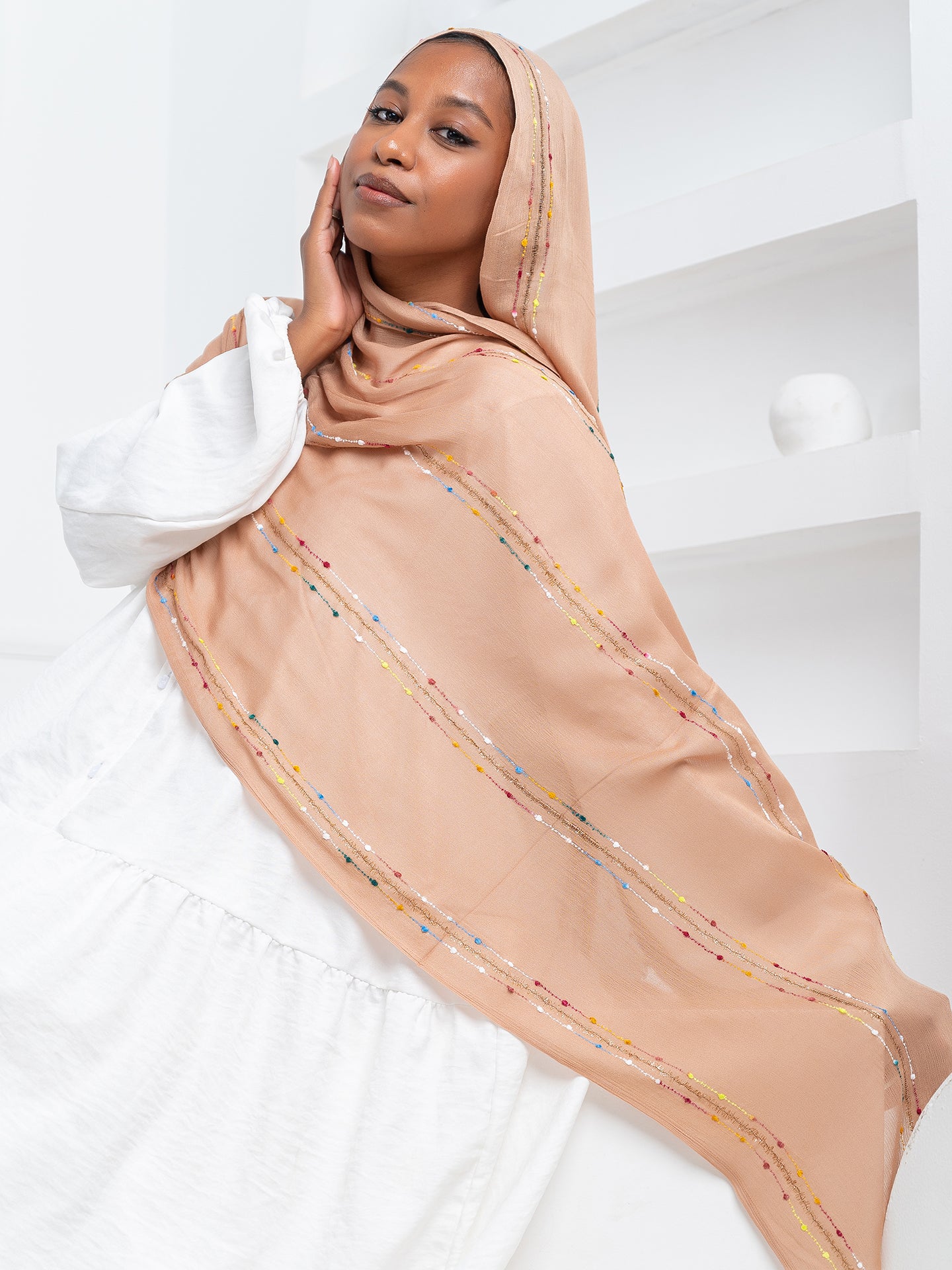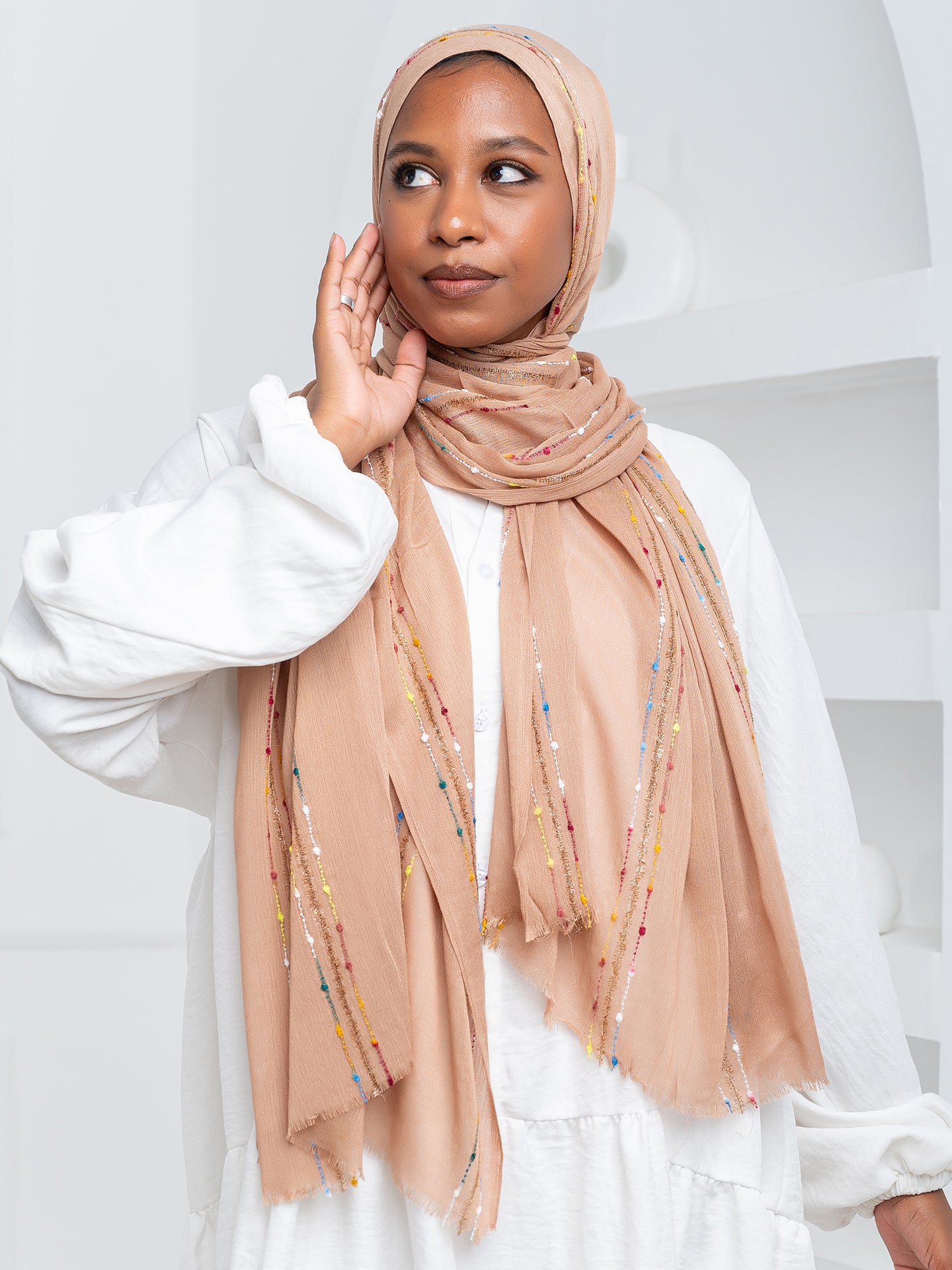 Made with soft, luxurious modal fabric, this hijab features beautiful embroidery that adds a touch of elegance to any outfit. Experience the perfect balance of comfort and style.
