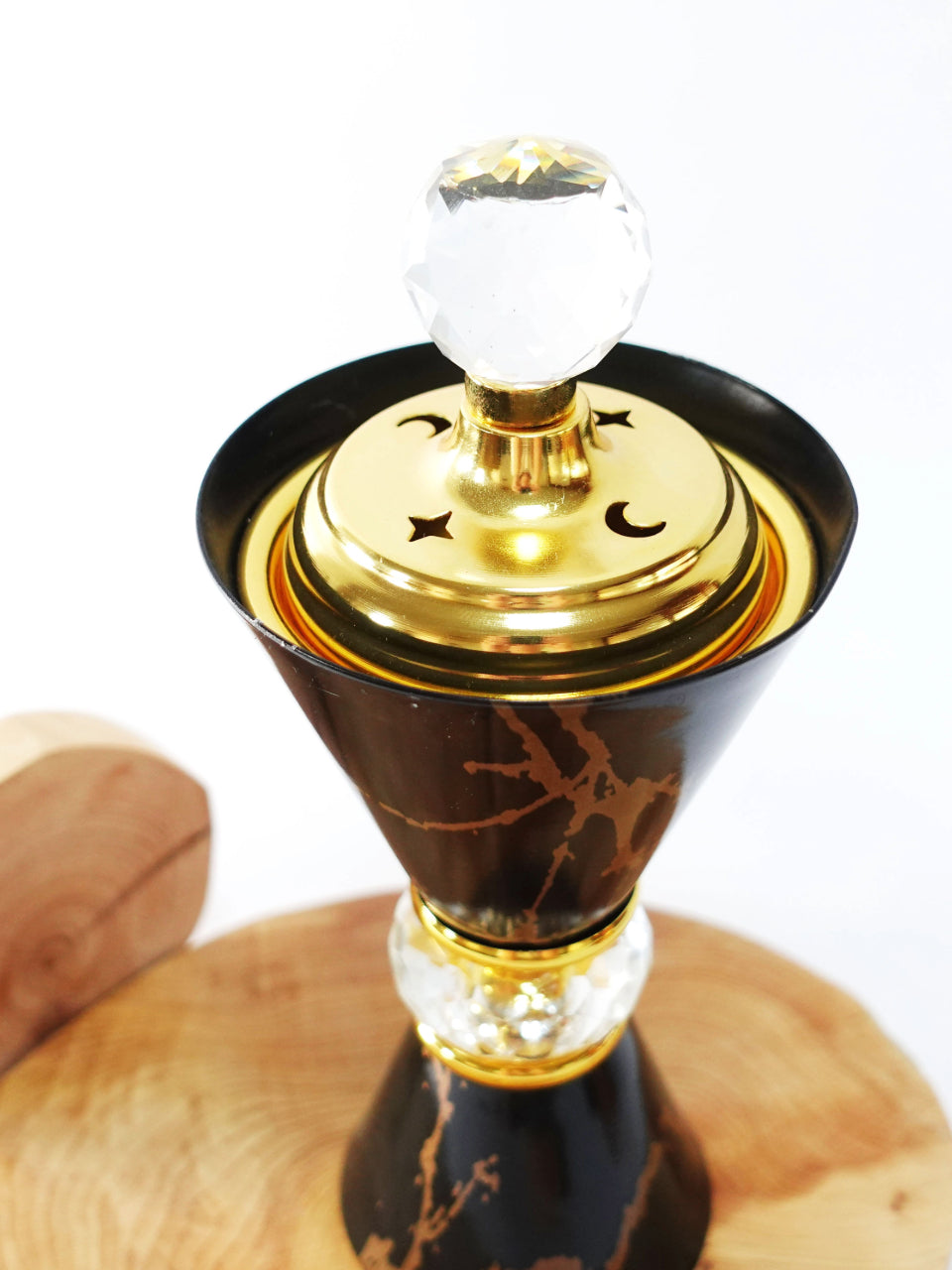 Expertly crafted from metal and beautifully finished in black marble color, this modern incense burner adds a touch of elegance to any space. Its round shape allows for a smooth and even burn of your favorite incense, creating a calming atmosphere for relaxation and meditation.