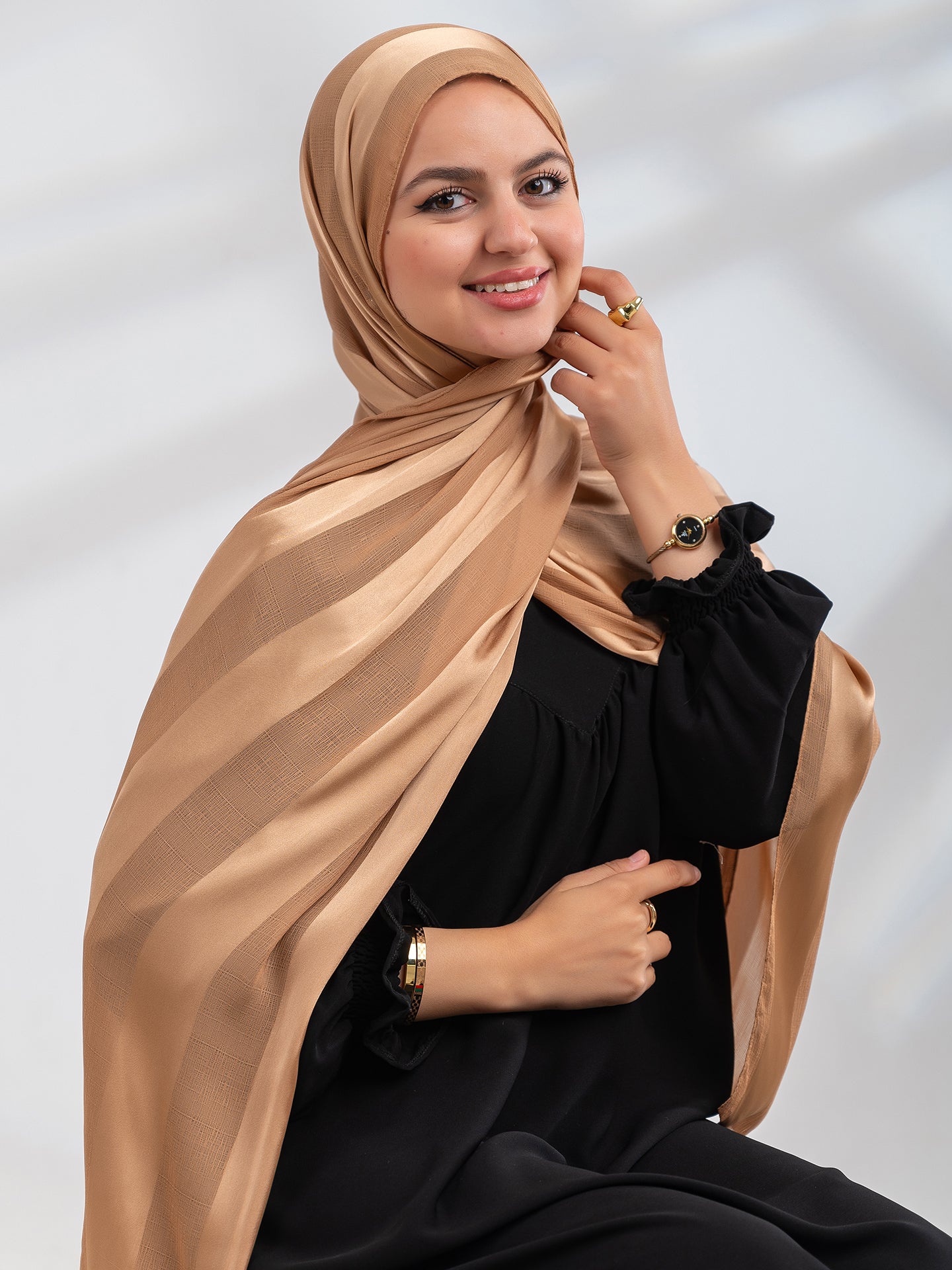 Satin blend scarf adds a touch of elegance to any outfit with its subtle striped design. Made from high quality materials, it offers a soft and lightweight feel, perfect for all-day wear. Elevate your style effortlessly with this luxurious accessory.